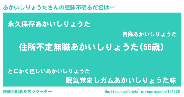 | 男性向けラノベタイトル風あだ名 | 『この素晴らしい世界にあかいしりょうたを!』 |