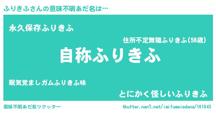 | 女子向けラノベタイトル風あだ名 | 『ふりきふなんてお断りですっ。』 |