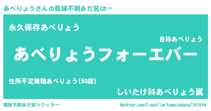| ファンタジー風あだ名 | 『エターナルアベリョウー』『ゼアベトゥ』 |