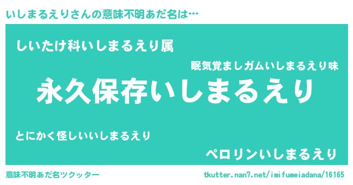 | 男性向けラノベタイトル風あだ名 | 『いしまるえりという概念が存在しない退屈な世界 』 |