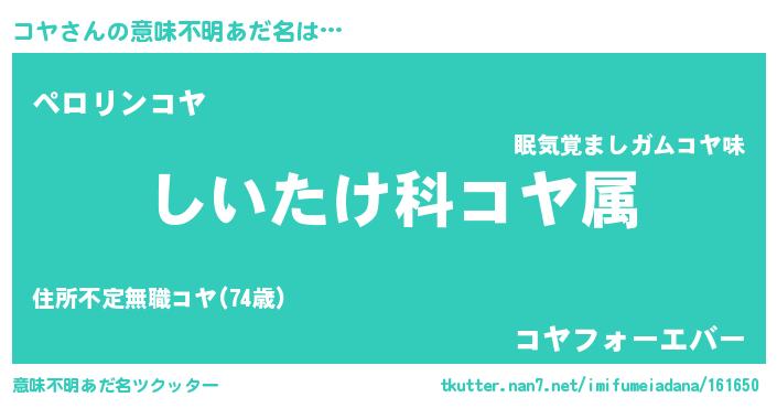 | 胡散臭い通販商品みたいなあだ名 | 『必ず成功する霊験あらたかなお札…その名も「コヤ」』 |