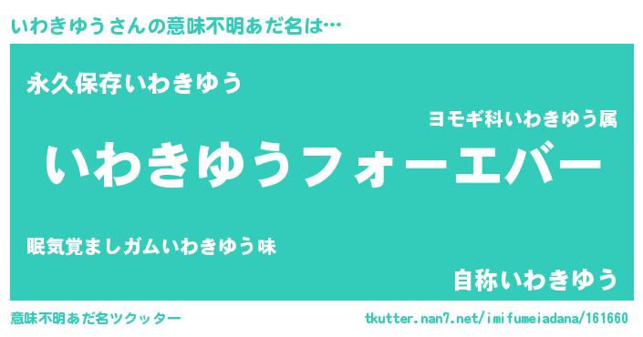 | ファンタジー風あだ名 | 『エターナルイワキユウー』『ゼイワトゥ』 |
