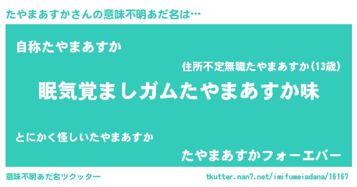 | 胡散臭い通販商品みたいなあだ名 | 『モンドセレクションを受賞したマグネット磁石…その名も「たやまあすか」』 |