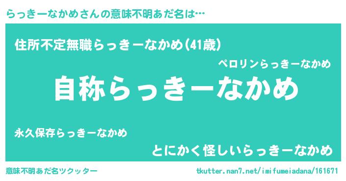 | 肩書あだ名 | 『らっきーなかめ総統』 |