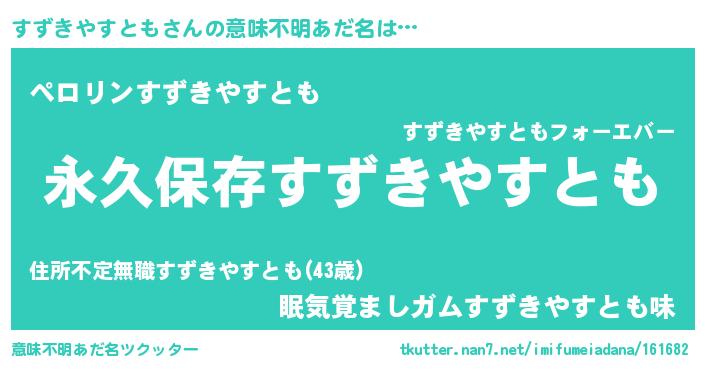 | 胡散臭い通販商品みたいなあだ名 | 『来世でも幸せになれる健康食品…その名も「すずきやすとも」』 |