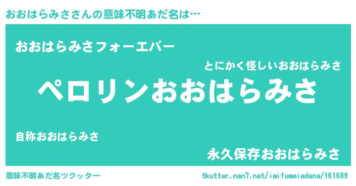 | 胡散臭い通販商品みたいなあだ名 | 『必ず成功する霊験あらたかなお札…その名も「おおはらみさ」』 |