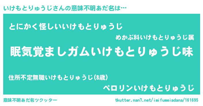 | 男性向けラノベタイトル風あだ名 | 『おまえをオタクにしてやるから、俺をいけもとりゅうじにしてくれ! 』 |