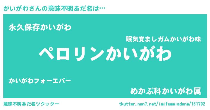 | 胡散臭い通販商品みたいなあだ名 | 『億万長者になれる水晶球…その名も「かいがわ」』 |