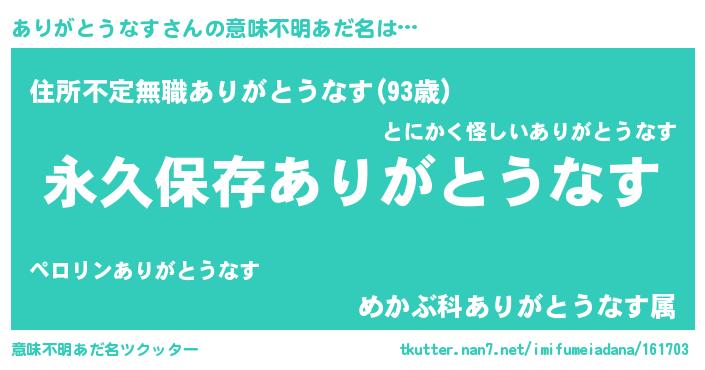 ヘコむあだ名 | 『ありがとうなす(小並感)』『ありを』 |