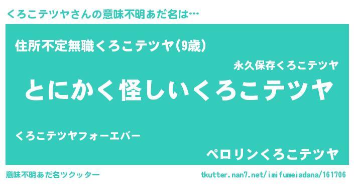 | ポケモン風あだ名 | 『ヒクロコテツヤ』『メロクッロ』 |