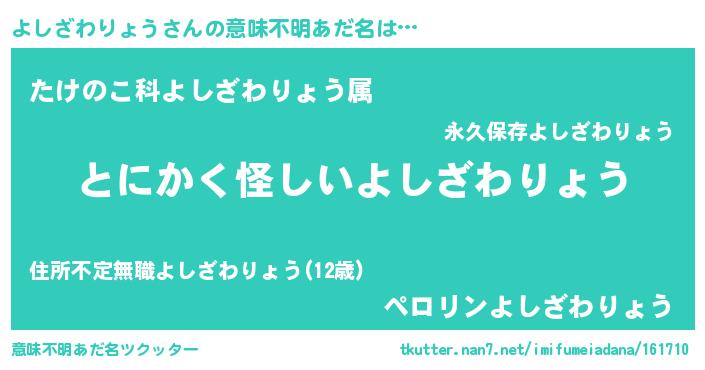 | 男性向けラノベタイトル風あだ名 | 『よしざわりょうの嫁は女の子じゃないと思った?』 |