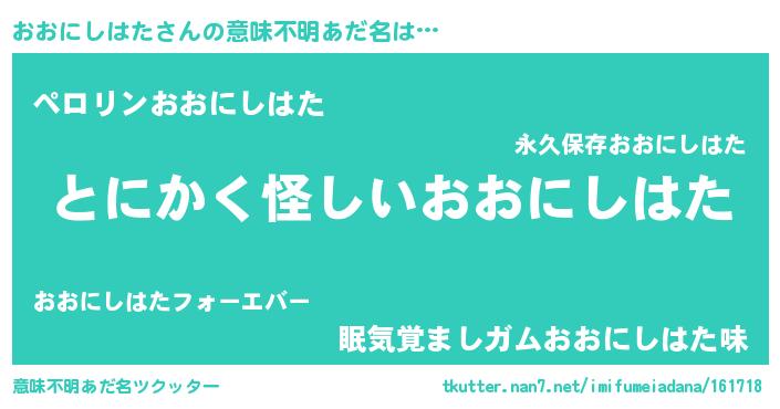 | 男性向けラノベタイトル風あだ名 | 『おおにしはたの嫁は女の子じゃないと思った?』 |
