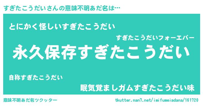| 胡散臭い通販商品みたいなあだ名 | 『来世でも幸せになれる健康食品…その名も「すぎたこうだい」』 |
