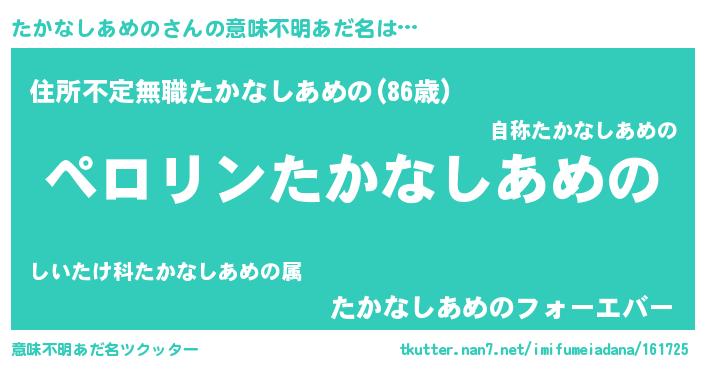 | 胡散臭い通販商品みたいなあだ名 | 『億万長者になれるブレスレット…その名も「たかなしあめの」』 |