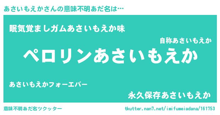 | ヘコむあだ名 | 『あさふぇ~』『あさいもえか(爆)』 |