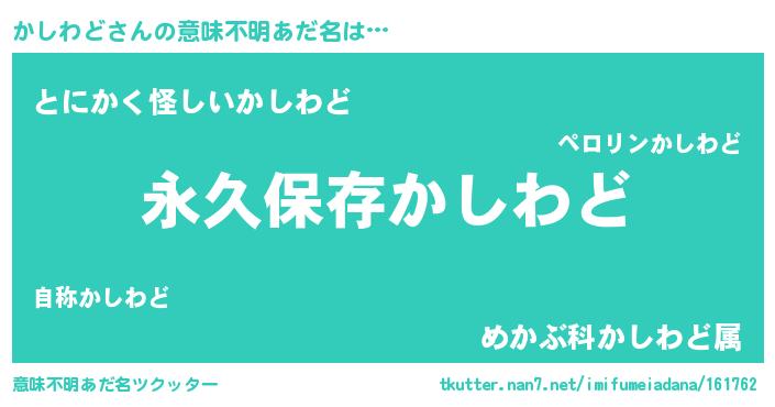 | ヘコむあだ名 | 『かしわど(遠い目)』『かしを』 |