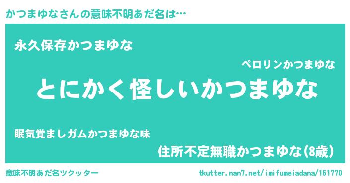 | ポケモン風あだ名 | 『カツゴンZ』『ヒカツマユナ』 |