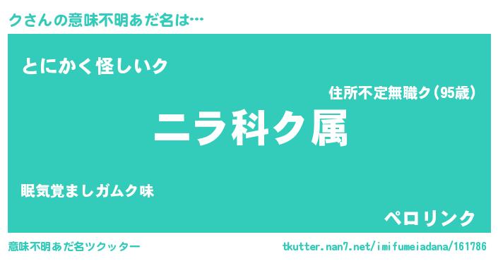 | ヘコむあだ名 | 『ク太郎』『クにゅー』『ク(遠い目)』 |