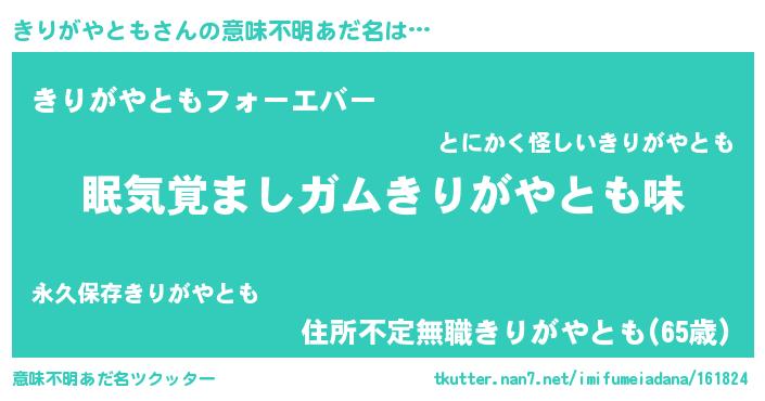 | ヘコむあだ名 | 『豆乳』『きりっぺ』『きりにゅー』 |