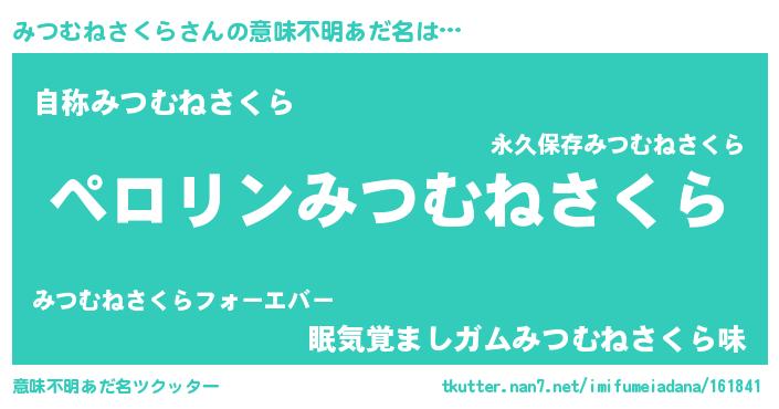 | 女子向けラノベタイトル風あだ名 | 『(仮)みつむねさくらのやんごとなき事情』 |