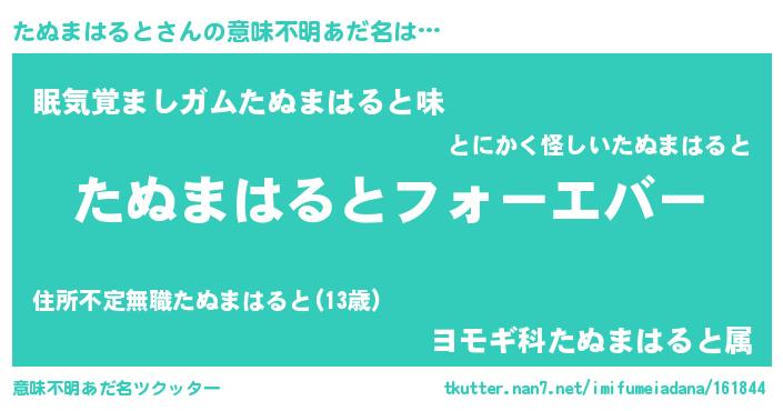 | 男性向けラノベタイトル風あだ名 | 『やはりたぬまはるとの青春ラブコメはまちがっている 』 |