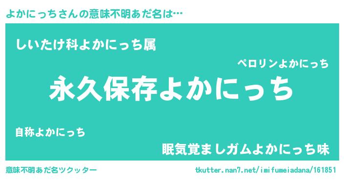 | 男性向けラノベタイトル風あだ名 | 『よかにっちという概念が存在しない退屈な世界 』 |