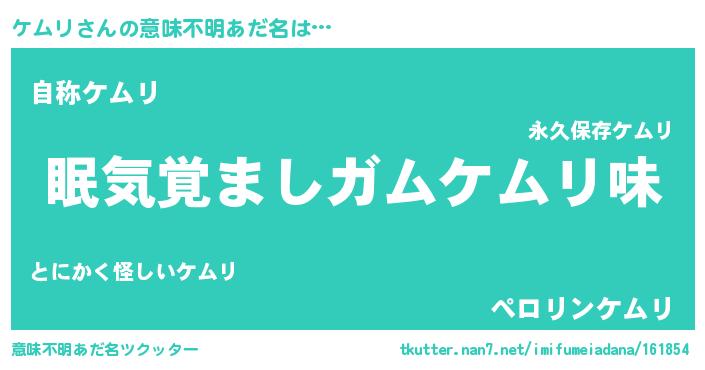 | ヒーロー風カッコイイあだ名 | 『慈愛の使者ケムリ』『超時空戦士ケムリ』 |