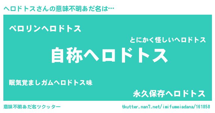 | 女子向けラノベタイトル風あだ名 | 『闇のヘロドトス』『ヘロドトス恋絵巻』 |