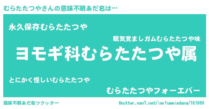 | 伝説のあだ名 | 『古文書に記された勇者むらたたつや』 |