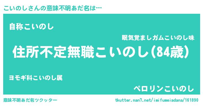 | 男性向けラノベタイトル風あだ名 | 『この素晴らしい世界にこいのしを!』 |