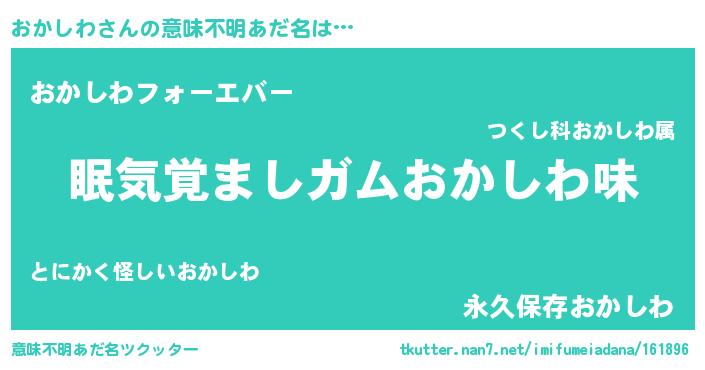 | ヒーロー風カッコイイあだ名 | 『慈愛の使者おかしわ』『ネオオカシワ』 |