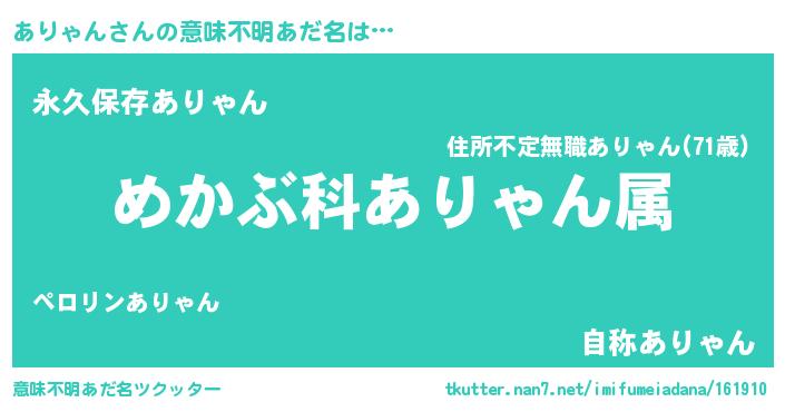 | 料理風あだ名 | 『ありゃんごはん』 |