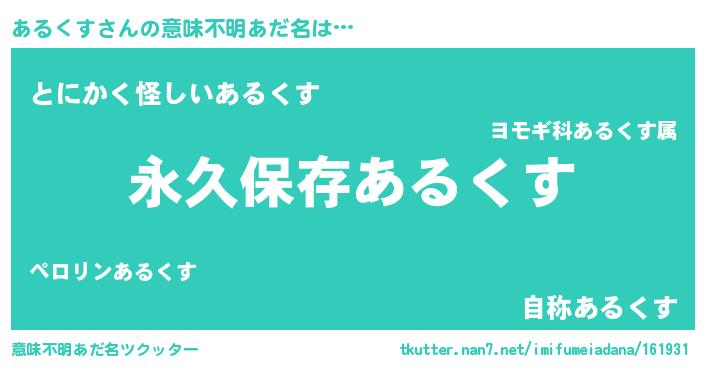 | ヘコむあだ名 | 『あるくす(苦笑)』『あるを』 |