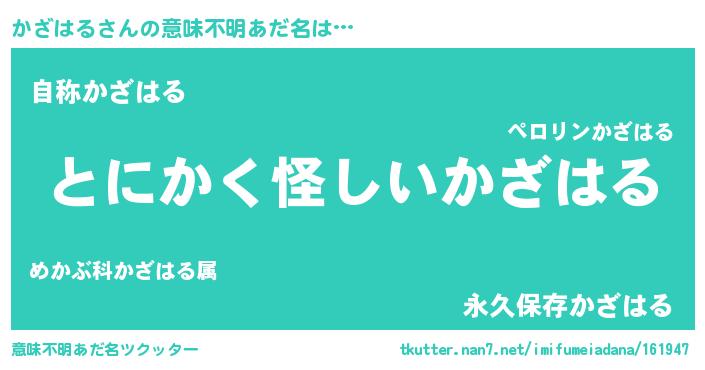 | ヘコむあだ名 | 『かざ太郎』『かざはる(笑)』 |
