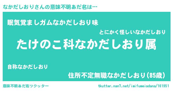 | 料理風あだ名 | 『なかだしおりごはん』 |