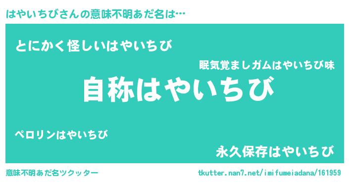 | 肩書あだ名 | 『はやいちび閣下』『はやいちび班長』 |