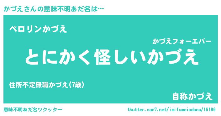 | 男性向けラノベタイトル風あだ名 | 『かづえの嫁は女の子じゃないと思った?』 |