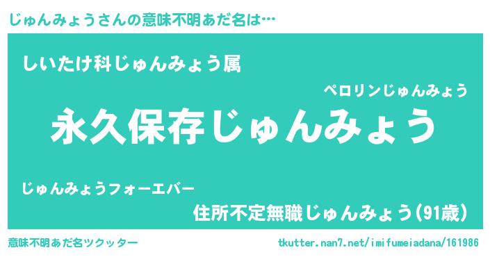 | 胡散臭い通販商品みたいなあだ名 | 『前代未聞の健康食品…その名も「じゅんみょう」』 |