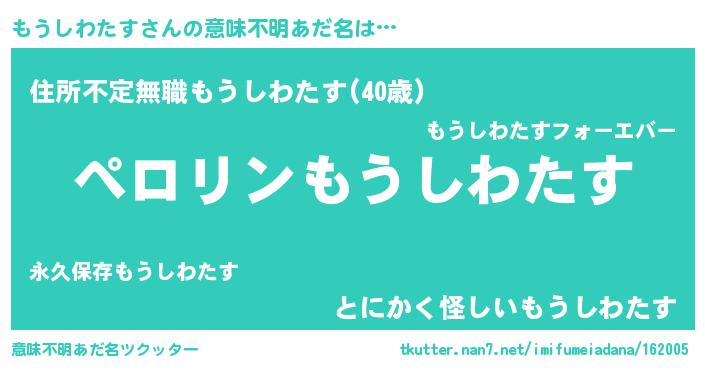 | ヒーロー風カッコイイあだ名 | 『スーパーモウシワタス』『仮面モウダー』 |