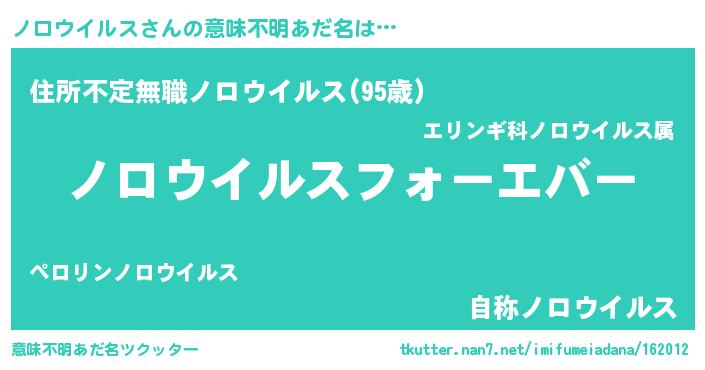 | ファンタジー風あだ名 | 『エターナルノロウイルスー』 |