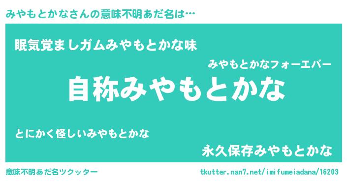 | 胡散臭い通販商品みたいなあだ名 | 『ガンによく効くアガリクス…その名も「みやもとかな」』 |