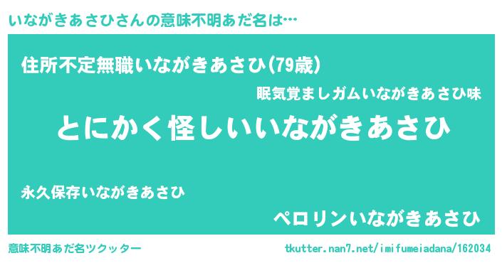 | 胡散臭い通販商品みたいなあだ名 | 『信頼と実績のサプリメント…その名も「いながきあさひ」』 |