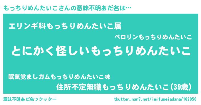 | 男性向けラノベタイトル風あだ名 | 『はたらくもっちりめんたいこさま!』 |