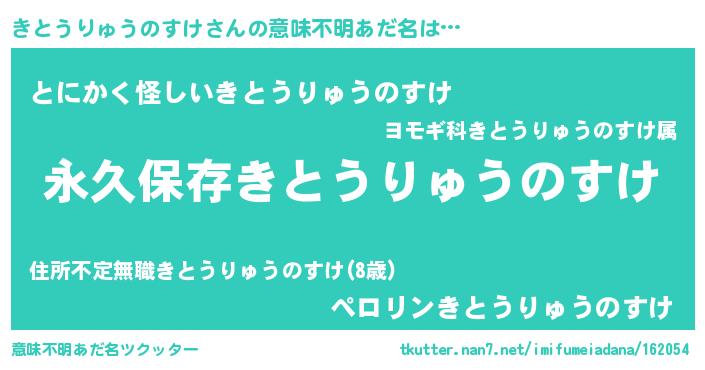 | ヘコむあだ名 | 『きとうりゅうのすけ(爆)』『きとお』 |