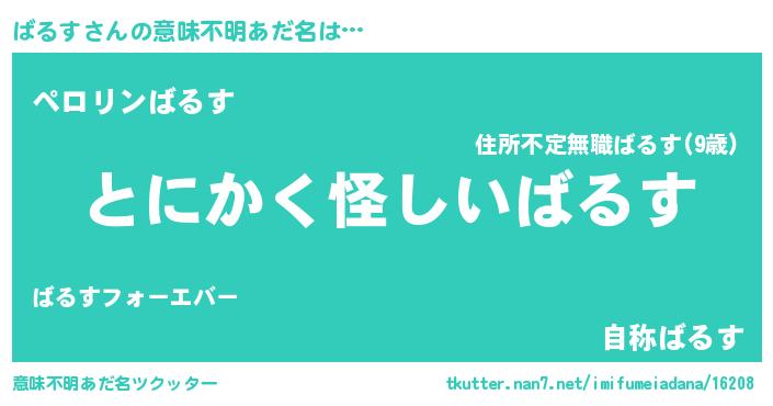 | 男性向けラノベタイトル風あだ名 | 『ばるすの嫁は女の子じゃないと思った?』 |