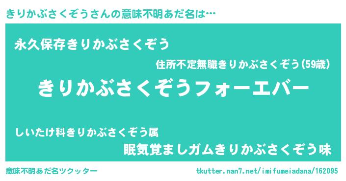 | ファンタジー風あだ名 | 『エターナルキリカブサクゾウー』 |