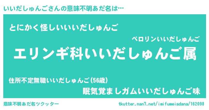 | 胡散臭い通販商品みたいなあだ名 | 『信頼と実績のサプリメント…その名も「いいだしゅんご」』 |