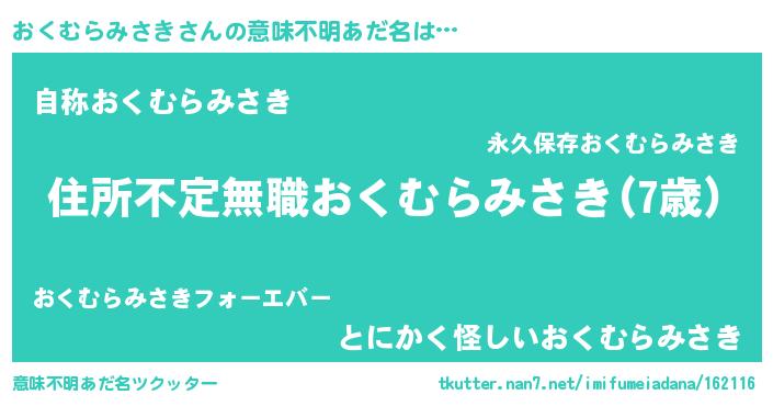 | ヘコむあだ名 | 『おくを』『おくむらみさき(笑)』 |