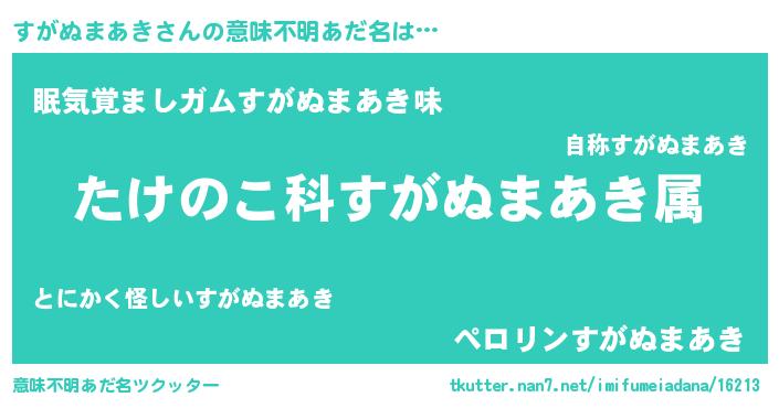| 料理風あだ名 | 『すがぬまあきごはん』 |
