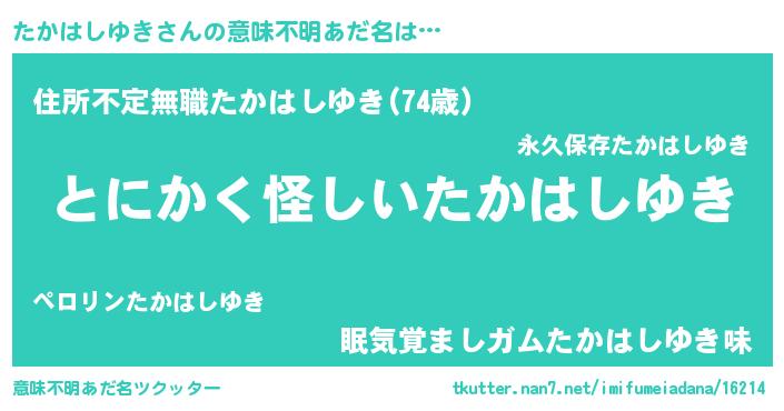 | 胡散臭い通販商品みたいなあだ名 | 『信頼と実績のサプリメント…その名も「たかはしゆき」』 |